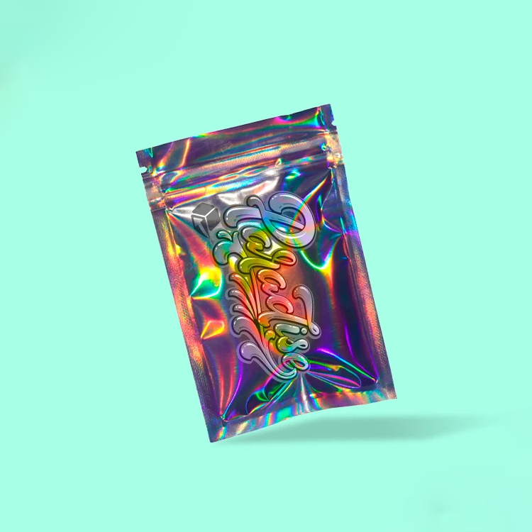 A Holographic Mylar Bag is a special type of packaging bag made from Mylar, a type of polyester film that is known for its durability and flexibility. The bag is laminated with a holographic foil that creates a 3D effect when light hits it, making it stand out from other types of packaging materials. This holographic foil is made using advanced technology that gives it a unique, eyecatching appearance.