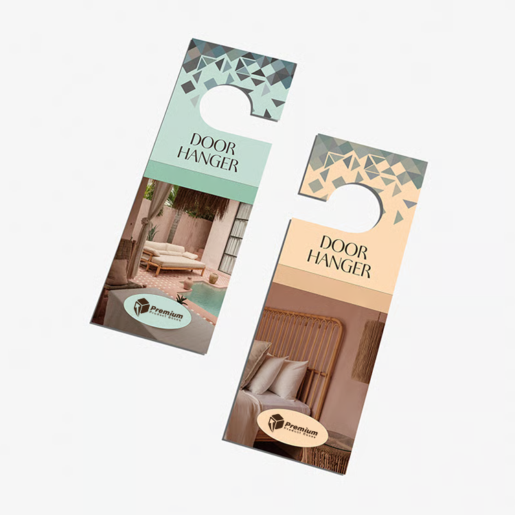 Folded door hangers: These are compact versions of door hangers that have been folded once or twice. Folded door hangers take up less space and are convenient to use, especially in urban areas where space is a concern.
